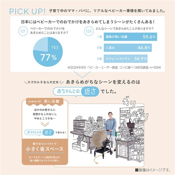 シートが動いて赤ちゃんがグッと近付く! シンクロシート搭載プレミアムベビーカー