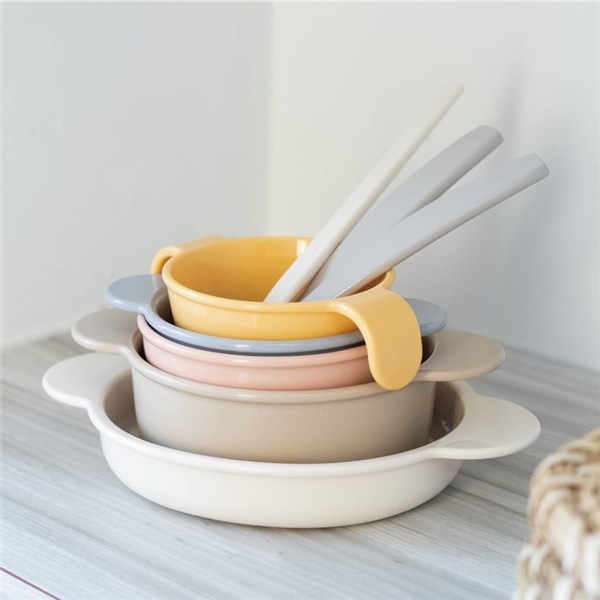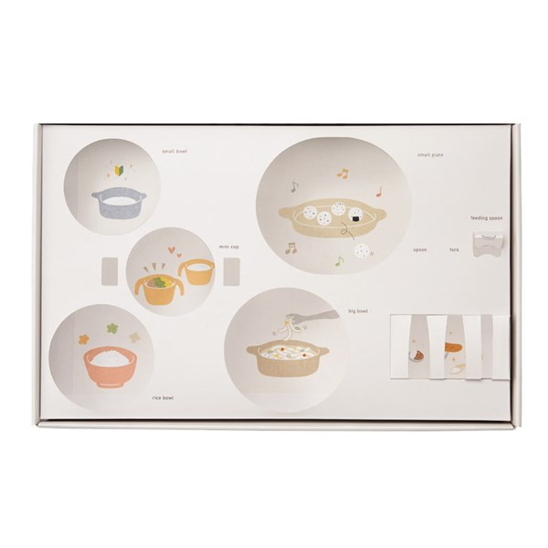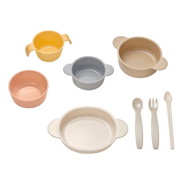 ■備考:セット内容: 小ばち(小)、小ばち(大)、小皿、ご飯茶碗、ちょこっとカップ、スプーン、フォーク、フィーディングスプーン ●電子レンジOK ●食洗器OK※業務用を除く ●消毒・除菌OK(煮沸・電子レンジ・薬液)